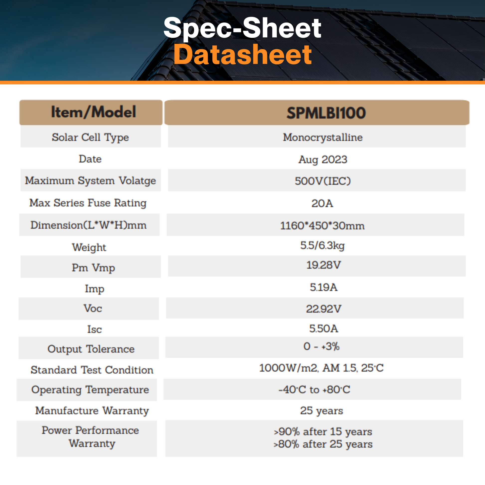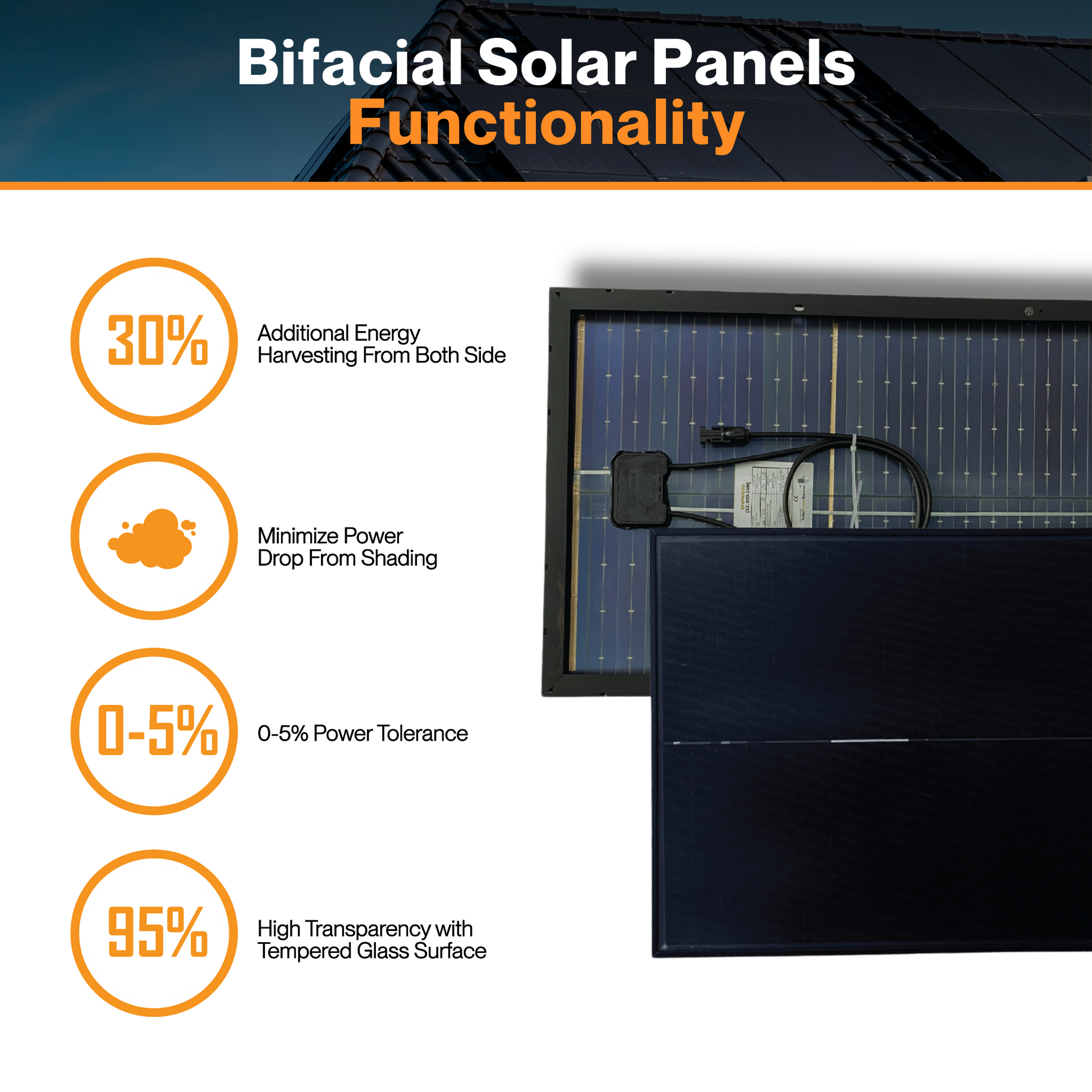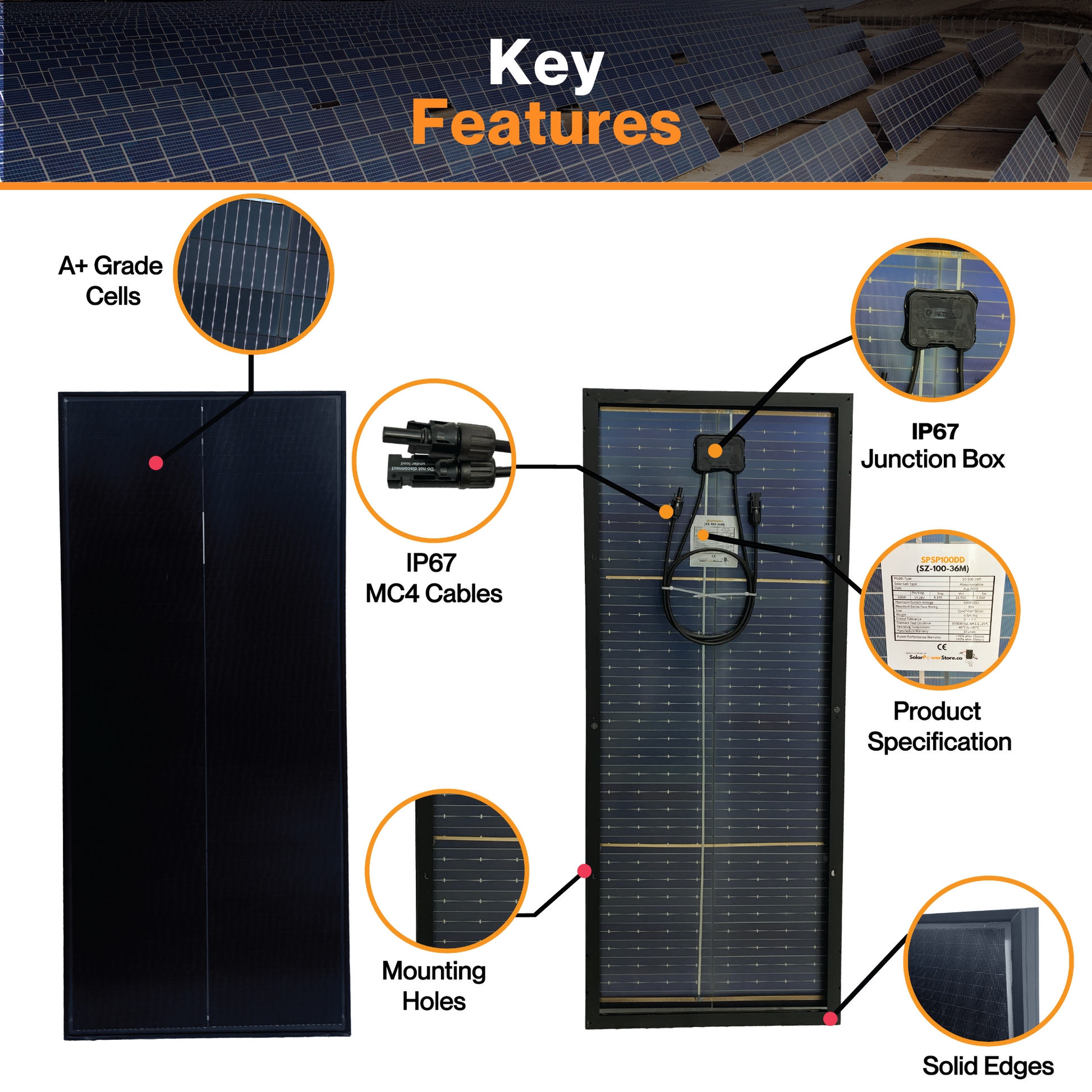 Maple Leaf 100W Mono Rigid Bi-facial Solar Panel - All Black | W/ IP67 Junction Box & IP67 MC4 Cable | Lightweight With Monocrystalline Cells