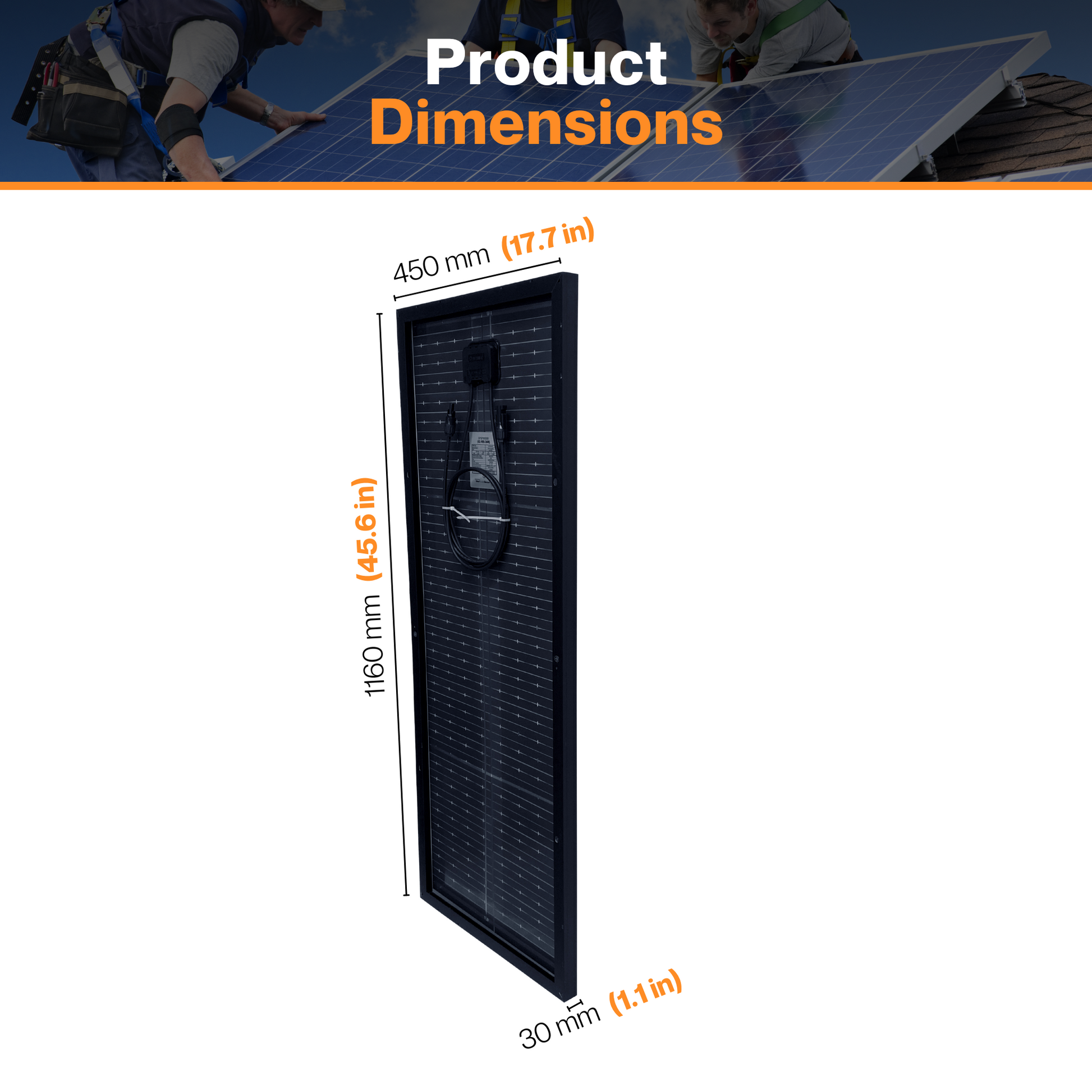 - Consistent Power Output You Can Count On: Our 100W Mono Rigid Solar Panel provides continuous power generation. This panel efficiently generates a significant amount of Watt-hours (Wh) of electricity, ensuring a dependable and robust energy solution. Whether for residential or commercial use, its durable construction guarantees long-lasting performance and reliability.