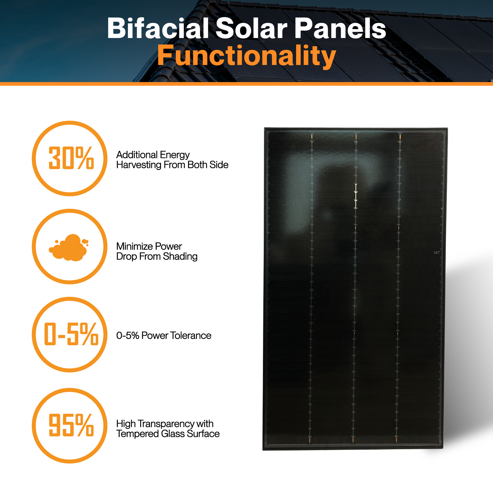 Maple Leaf 180W Mono Rigid Solar Bi-facial Panel - All Black | W/ IP67 Junction Box | IP67 MC4 Cable | Lightweight With Monocrystalline Cells
