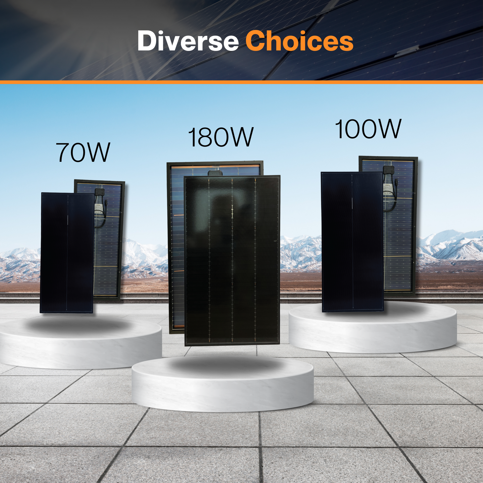 - Comprehensive Multi-Protection Features: Place your trust in the durability of our Bifacial 180W Mono Rigid Solar Panel technology, designed to prevent the occurrence of hot-spot heating. With bypass diodes, it guards against overheating and keeps running without interruption even when accidentally shaded by avoiding underperforming cells. Experience worry-free power generation thanks to cutting-edge safety features.