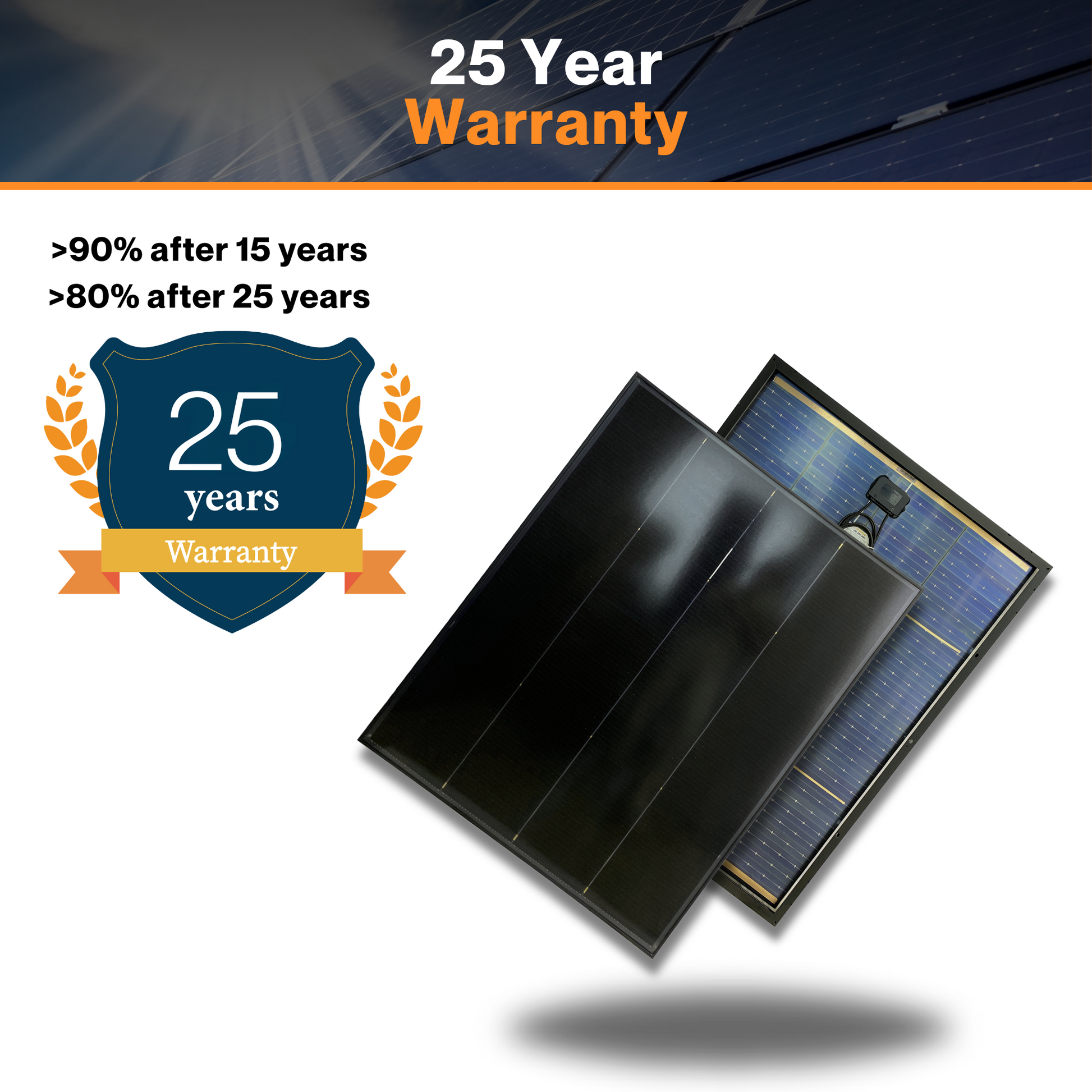 - Power Performance Warranty: >90% after 15 years and>80% after 25 years