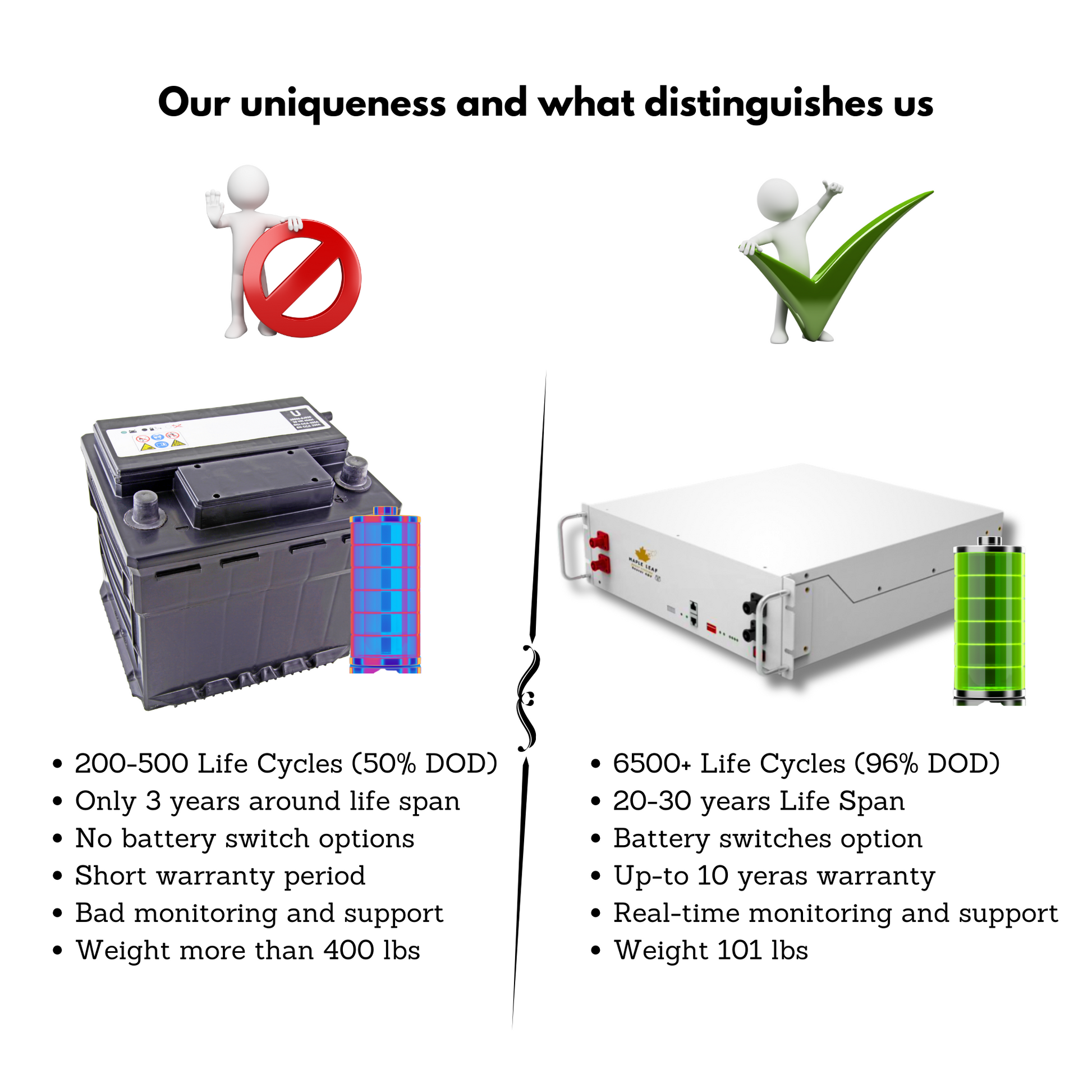 - Comprehensive BMS and Smart Functionality: The built-in Battery Management System (BMS) is your guardian, providing warnings and protection against over-discharge, over-charge, overcurrent, short-circuit, and high/low temperatures. Combined with LiFePO4 cathode material and automatic balancing, enjoy a longer cycle life and robust durability. Compact, lightweight, and equipped with LED display, CAN/RS485 port, and rapid shut-down for the North American market, this battery is your perfect all-in-one solution for off-grid and backup applications.
