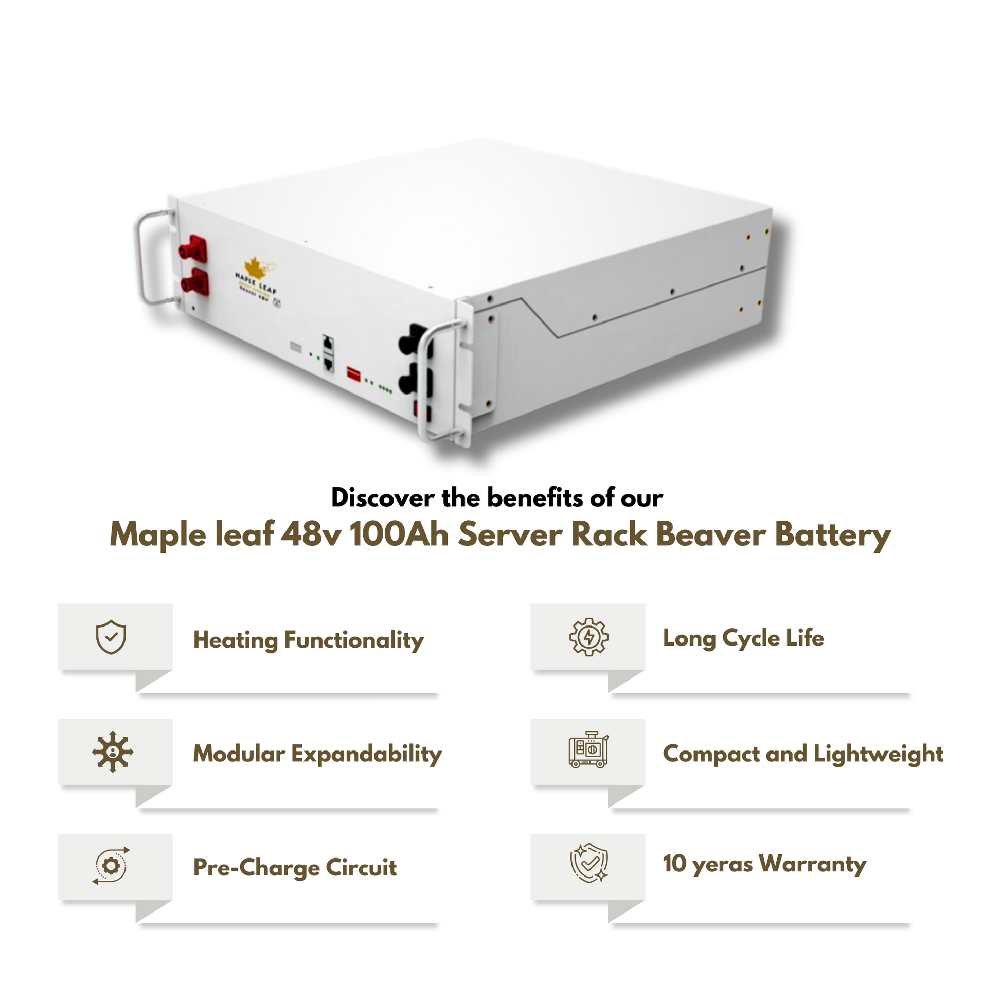 Maple leaf 48v 100Ah Server Rack Beaver With Heating | Deep Cycle Lithium Iron Phosphate Battery (LiFePO4 Battery) | W/ Advance BMS, LED Display And CAN/RS485 Port For External Communication | 10 Years Warranty