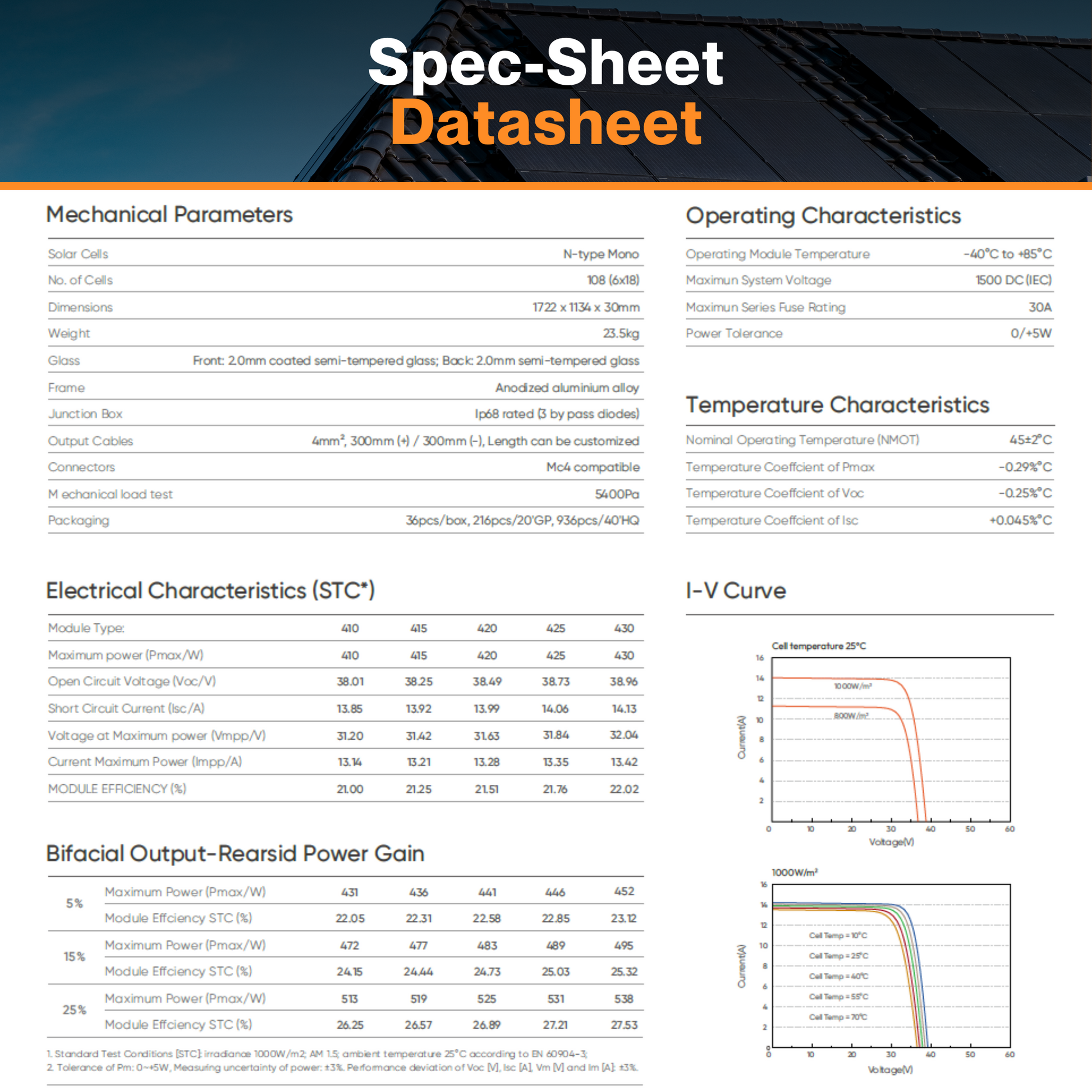 - Cutting-Edge Technological Advancements: The integration of SunEvo's latest S-TOPCo 2.0 technology, coupled with attributes like the absence of polysilicon wrapping, complete electrical isolation, and absence of leakage current, augments reliability and safety, establishing it as a secure option for rooftop installations.
